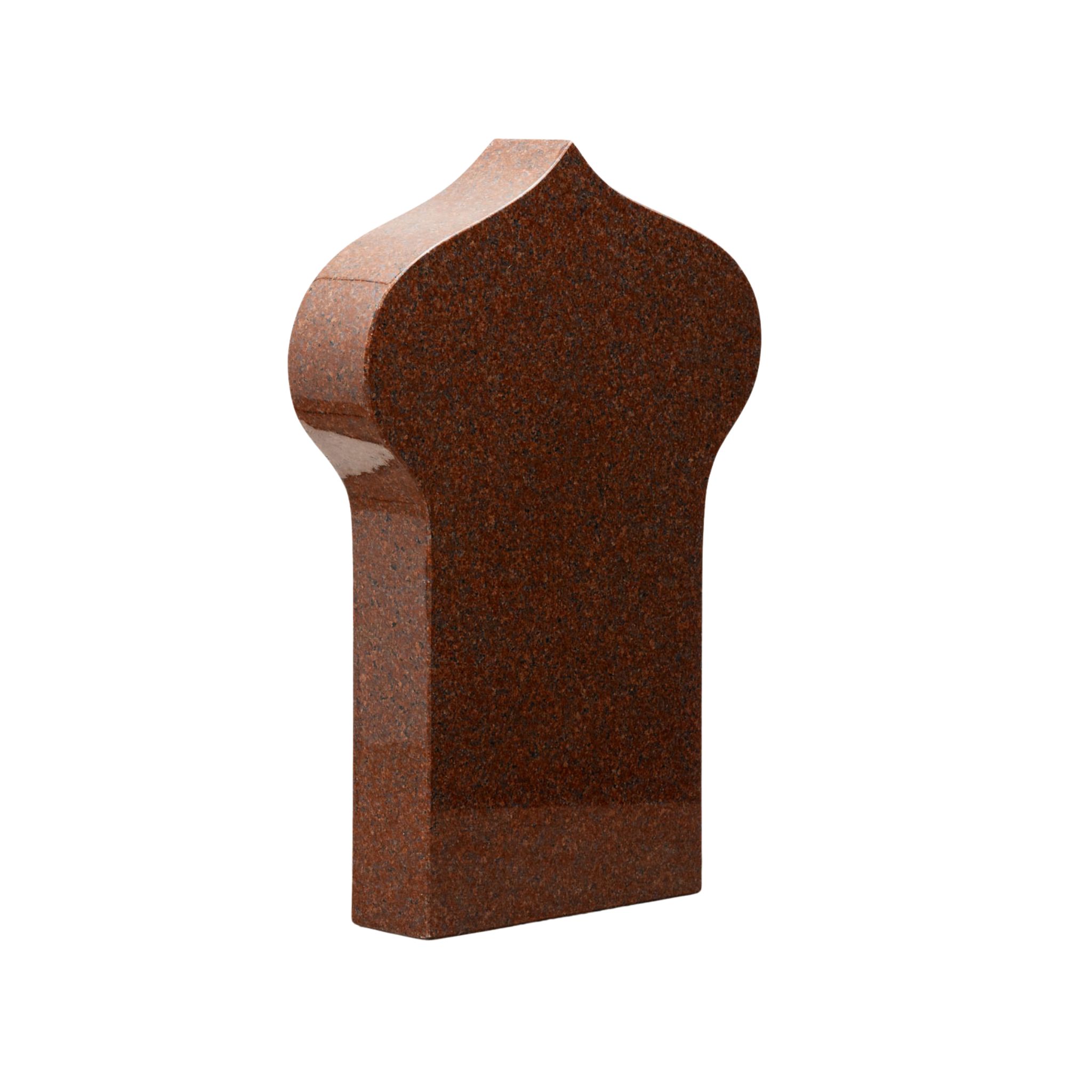 Gravstein modell 11 har en spesiell og dekorativ silhuett som gir et sterkt visuelt uttrykk. Den varme brunlige steintonen skaper en myk og naturlig helhet som skiller seg ut fra mer tradisjonelle modeller. Dette gravminnet passer godt for deg som ønsker noe unikt, men fortsatt verdig og harmonisk. En modell som gir rom for personlig preg og egen stil.