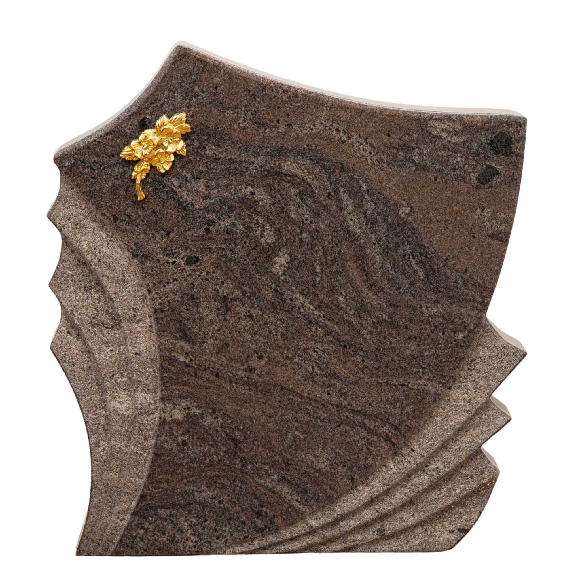 En dekorativ gravstein med myke, buede linjer og levende steinmønster. Et eksklusivt valg for et personlig gravminne.