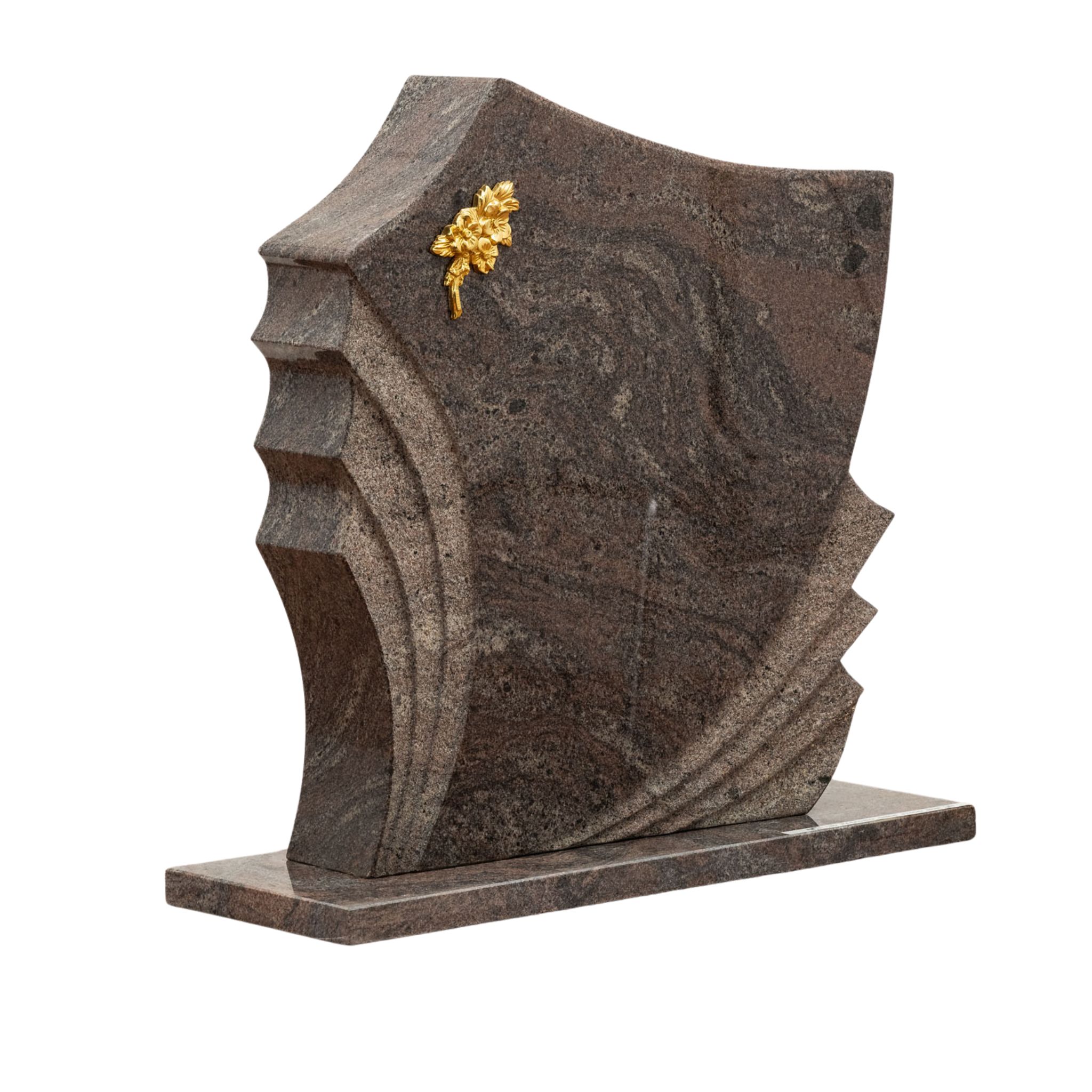 Gravstein modell 17 har en kunstnerisk utforming med buede linjer og lagdelte former som gir et elegant og særpreget uttrykk. Den naturlige steinstrukturen tilfører dybde og varme til helheten. Dette er en modell som passer godt for deg som ønsker et gravminne med tydelig personlighet og et mer eksklusivt design. En flott løsning for et minnesmerke som skal skille seg ut på en verdig måte.